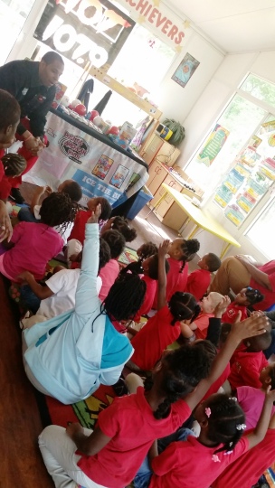 Each visit consist of Reec reading one of his self authored books from the Ice The Bully Book Series (www.IceTheBully.com), giving away free copies of the book, distributing free toys that promote fitness (i.e. jump ropes, balls, frisbees, etc), learning games, shirts, book bags, coloring books and more. Audiences range from 70 to 200 kids and everyone leaves with a gift! The best part for the schools is the program is FREE.