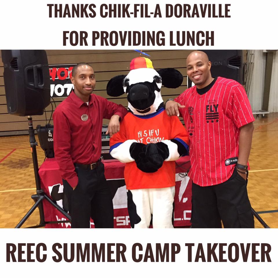Chick-Fil-A Doraville provides lunch for the entire camp and Microsoft (Lenox Mall) brought portable gaming stations. James Taylor (Dj JayT) kept the energy up with all the hits and even taught a few campers how to DJ! Gifts where provided by Positive American Youth and Reec Swiney broadcast live on Hot 107.9 from the camp.